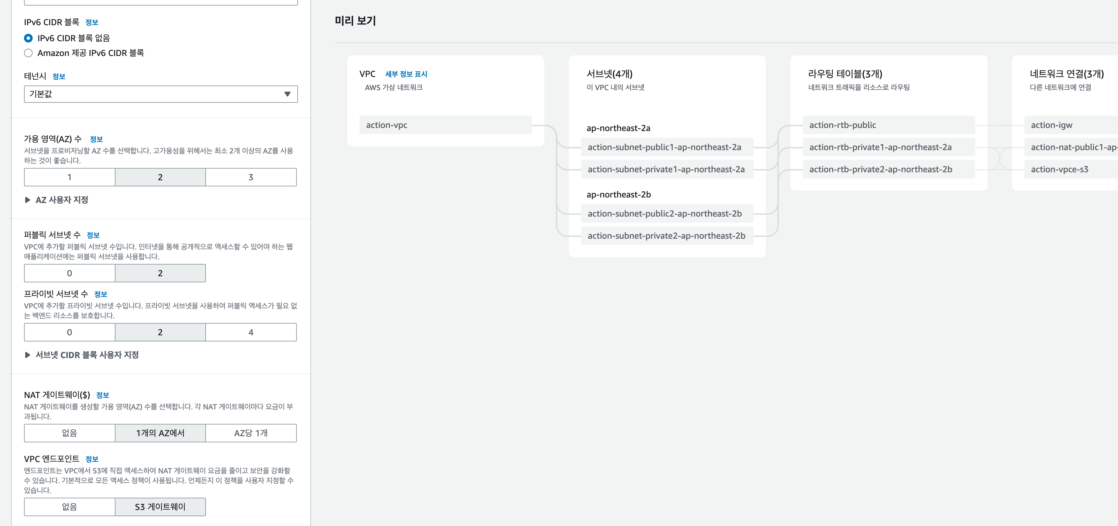 우아한테크캠프 6기를 진행하며 최종 프로젝트를 위해 CI/CD를 구축하며 정리한 문서입니다. LoadBalancer를 사용하지 않고 단일 EC2에 배포할 예정이라면 EC2, S3, CodeDeploy 설정, GitHub 설정 항목만 진행하셔도 됩니다. 이 경우 CodeDeploy 설정 - 배포 그룹 생성 시 로드 밸런싱 활성화 옵션을 Off 해주시면 됩니다. Actions + CodeDeploy Github Actions는 GitHub에서 제공하는 서비스로, 레포지토리마다 부여된 환경에서 특정 이벤트의 발생에 따라 작업을 실행하거나, 주기적으로 특정 작업을 실행할 수 있는 서비스입니다. 이번 실습에서는 EC2 인스턴스는 private 서브넷에 두어 외부에서 접근할 수 없게 막고, public 서브넷에 로..